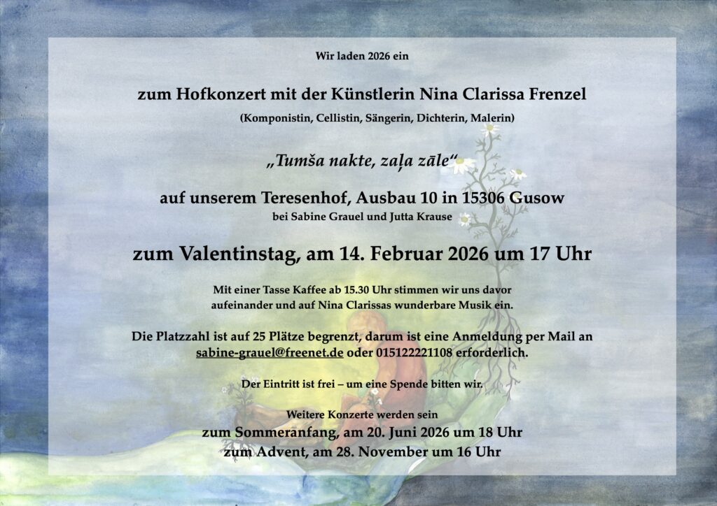 Wer gerne per Mail über meine bevorstehenden Konzerte, Aufführungen und Neuheiten informiert werden möchte, schicke mir bitte eine kurze Nachricht: